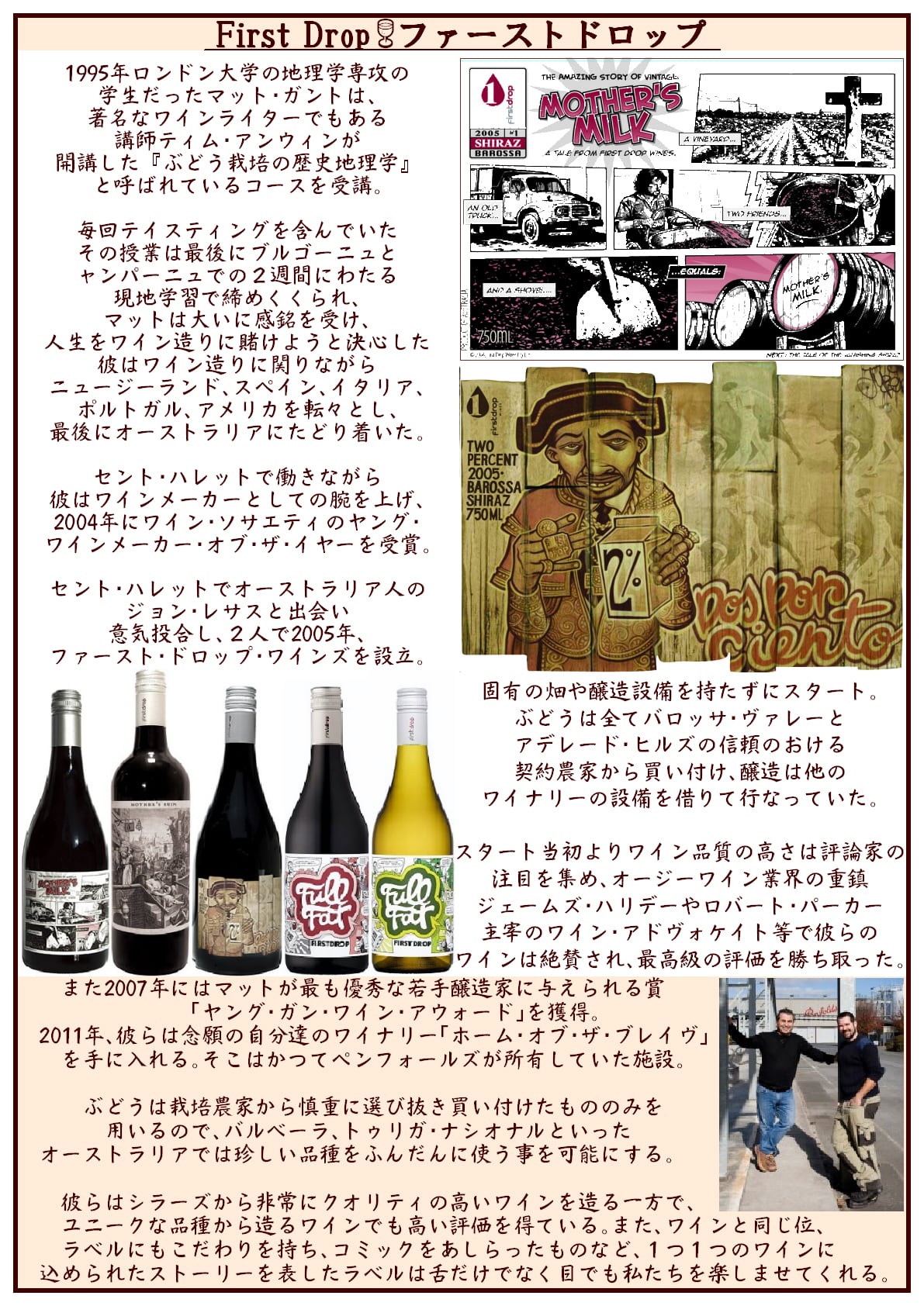そして2005年に「ファースト・ドロップ・ワインズ」を設立します。